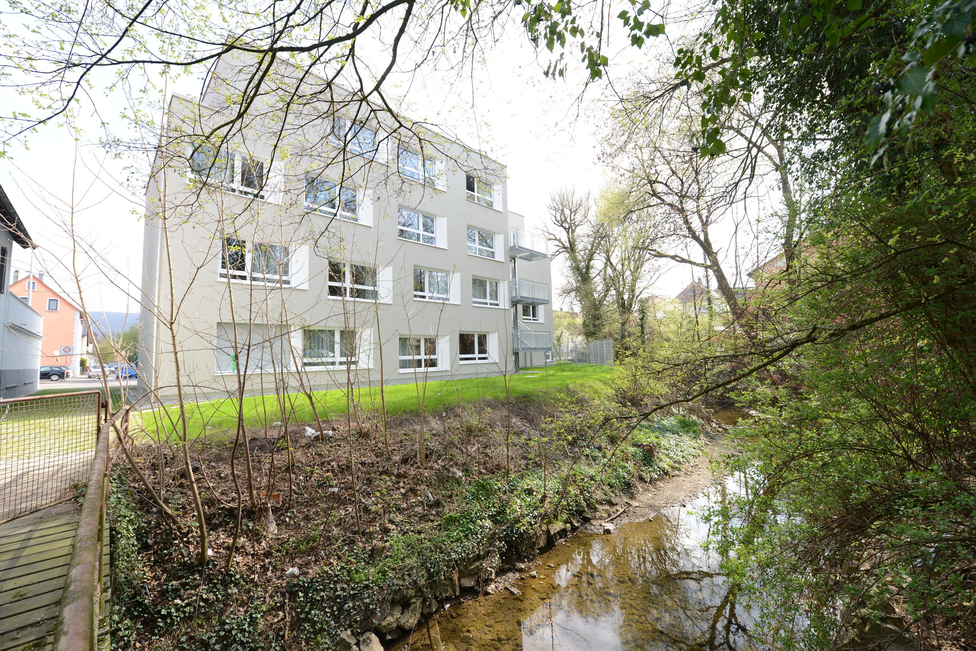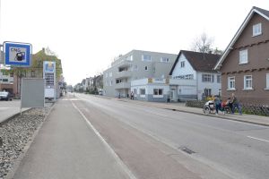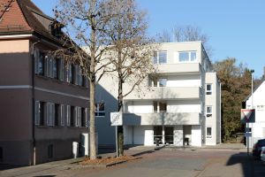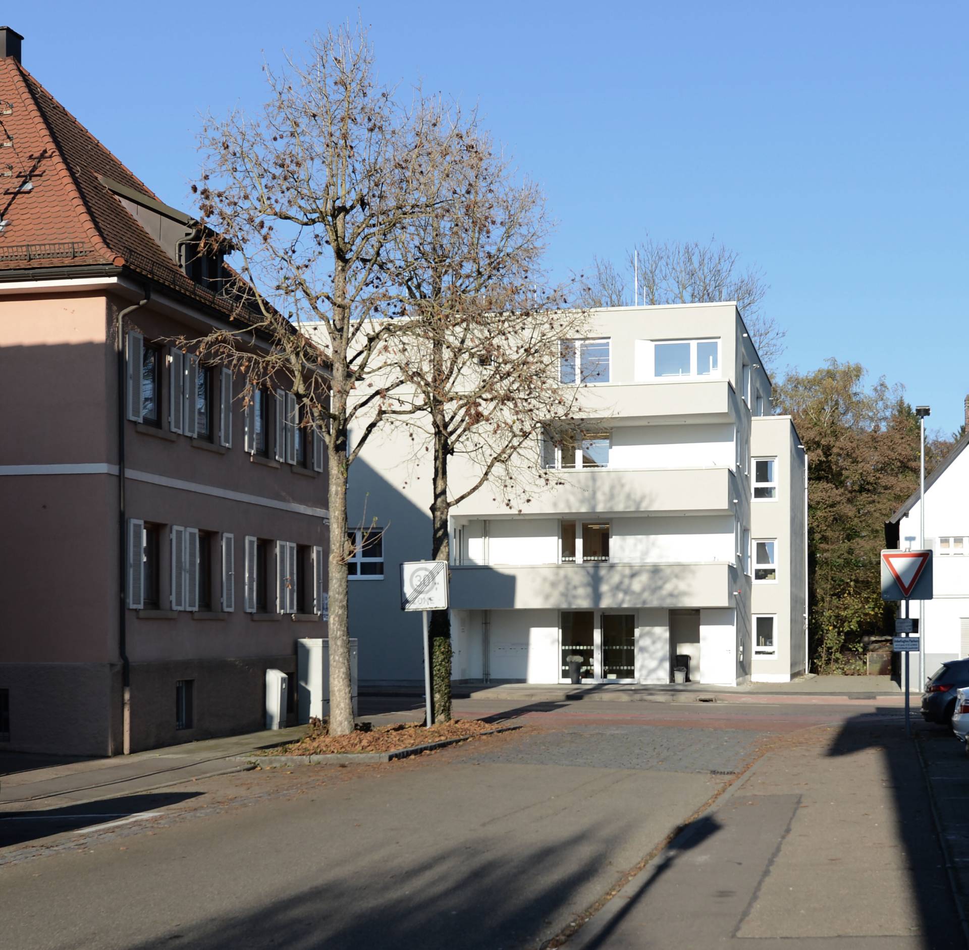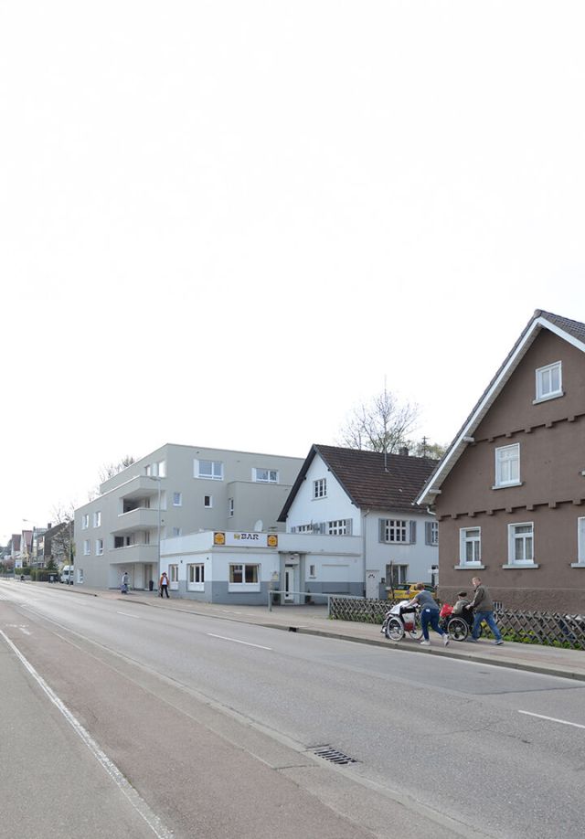 Der Standort im Zentrum von Aalen, die Architektur, die niemanden ausschliesst und das neutrale Gebäude, das sich mit seiner Höhe, der Kubatur und der Farbigkeit unauffällig in die Straßenrandbebauung integriert, ermöglicht den Bewohner:innen eine inklusive Teilnahme am alltäglichen Leben. Im Eingangsbereich findet sich kein Hinweisschild und kein Logo der Stiftung weist darauf hin, dass sich im Innern des Gebäudes Apartments für Menschen mit Behinderung befinden.